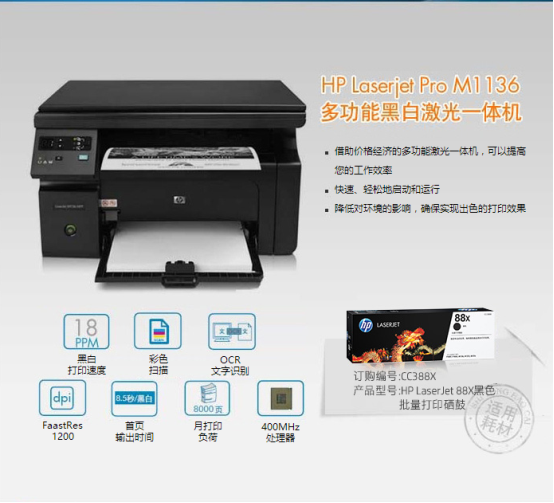 名稱:惠普M1136多功能打印機